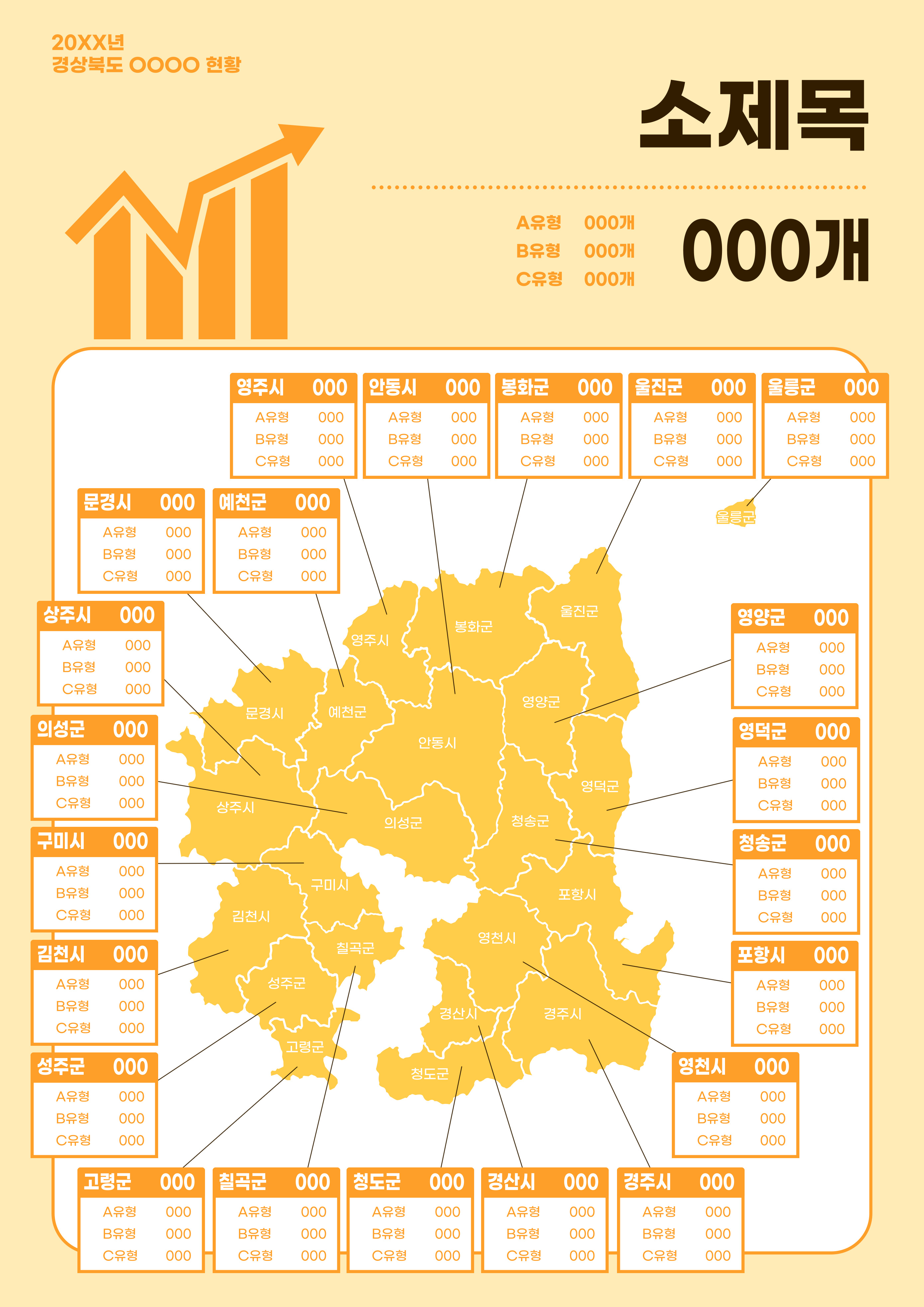 노란색의 심플한 경상북도 지도 안내